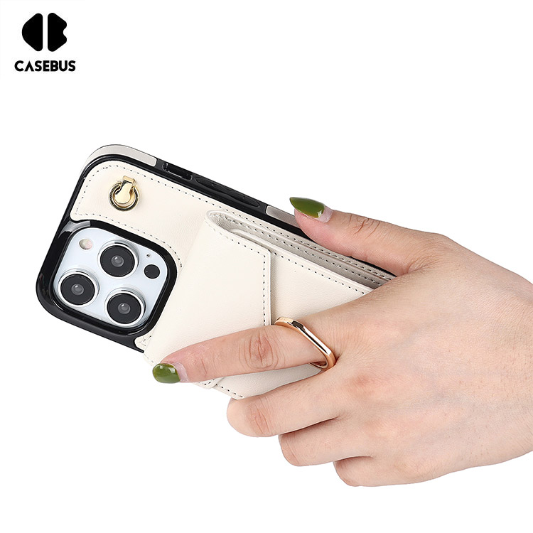 Casebus Crossbody Wallet Phone Case, 360 Rotation Ring Holder, Card Slots & Detachable Wrist Strap, RFID Blocking, Kickstand, Shockproof Cover