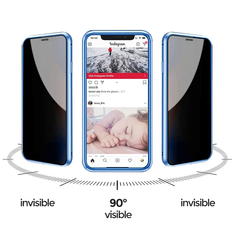 LOONEY Casebus Double Sided HD Clear Anti-Peep Magnetic Phone Case, Built in Privacy Screen Protector Metal Bumper Frame 360 Full Protective Cover