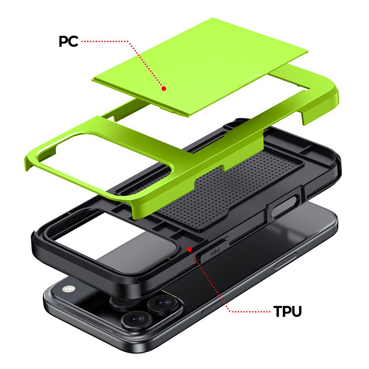 SHAREEF Casebus Classic Phone Case, with Credit Card Holder, Sliding Slot Heavy Duty Protection Dual Layer Armor Shell Cover