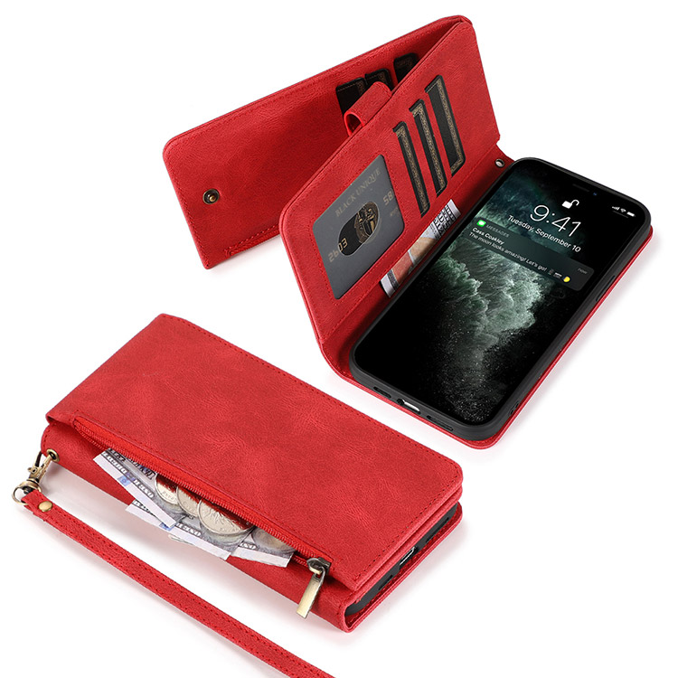 8 card slots, 2 cash pockets. Glossy zipper makes you looks stylish, never get rust. Snap button avoid card loss. Thinner and lighter than other wallet case. Inner case 4 corners shockproof design.
