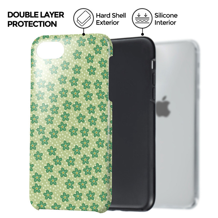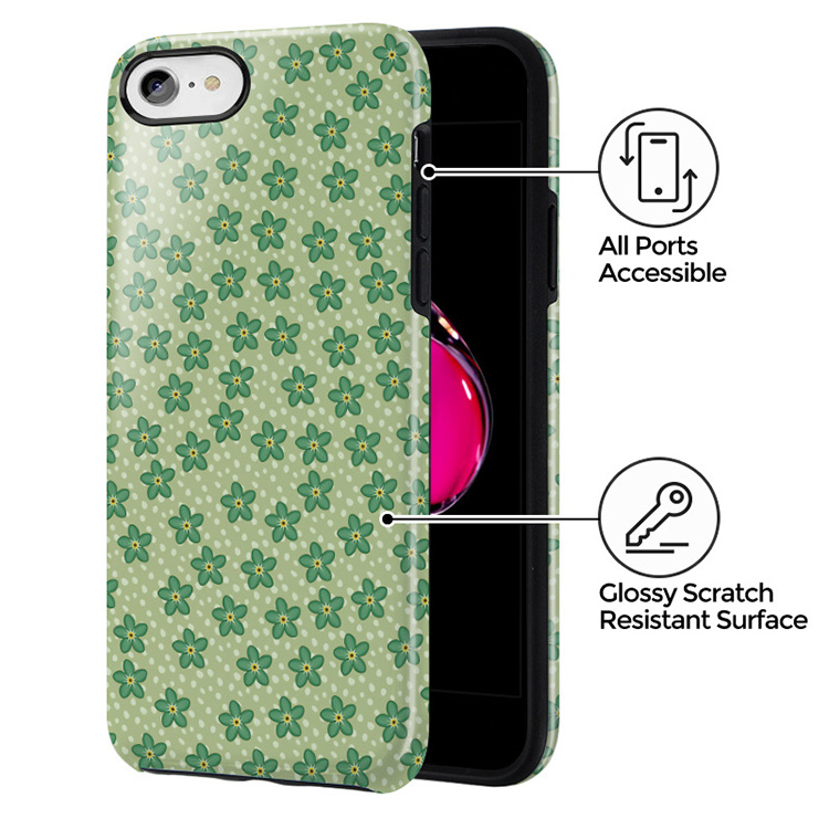 As beautiful as summery-dress and as green as the flowery meadows, the Daydream phone case is an absolute must-have for those romantic summer days and strolls around the city! Tiny green flowers meet with a playful dotted pattern fitting into the Y2K craze and create the cutest protective phone case!