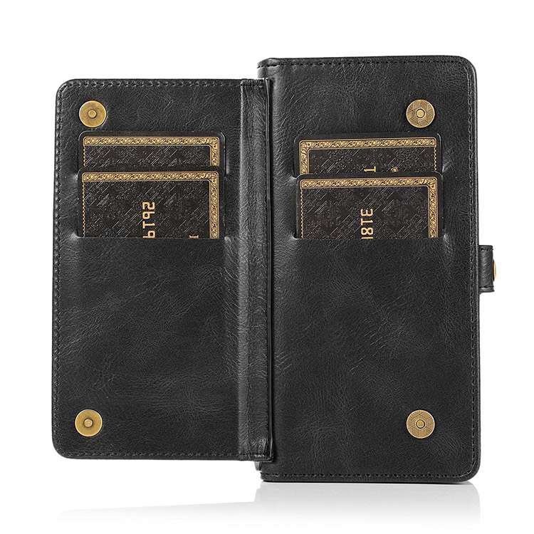 Casebus Classic Detachable Magnetic Wallet Phone Case, 11 Card Slots, 2 in 1, Leather Zipper, Folio Flip, Money Pocket Clutch Case