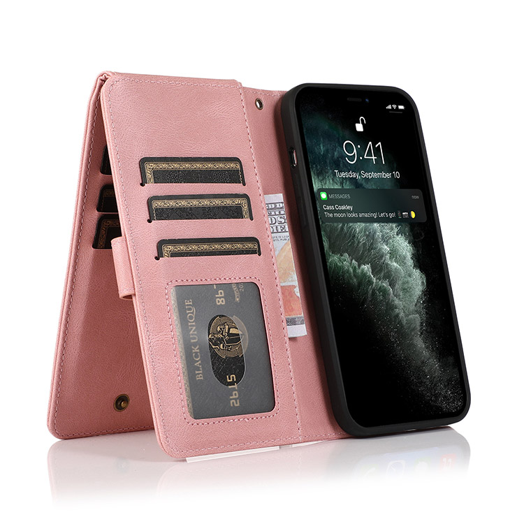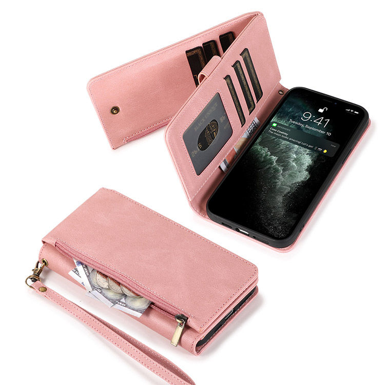 Casebus Multi Functional Wallet Phone Case, 14 Card Slots 3 Purse 1 Zipper 1 Wrist Band 1 Metal Buckle, Wrist Strap Clutch Magnetic Detachable
