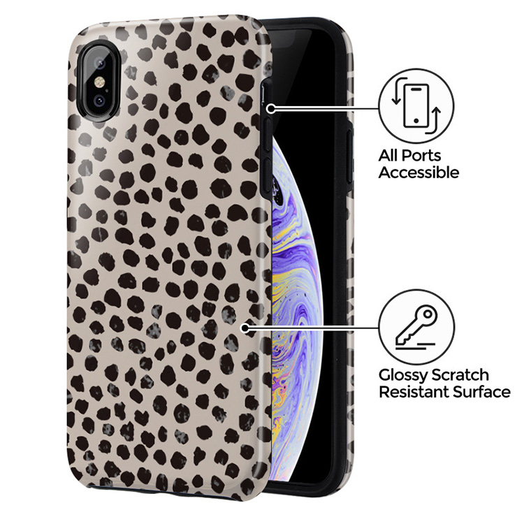 Cute cream color as a background for the unique pattern of asymmetrical black spots creates a real eye-catcher in our Almond Latte phone case. The spotted pattern adds a touch of luxury to your phone, while the case's hard-shell nature offers much-needed protection making it a popular choice between fashion lovers.